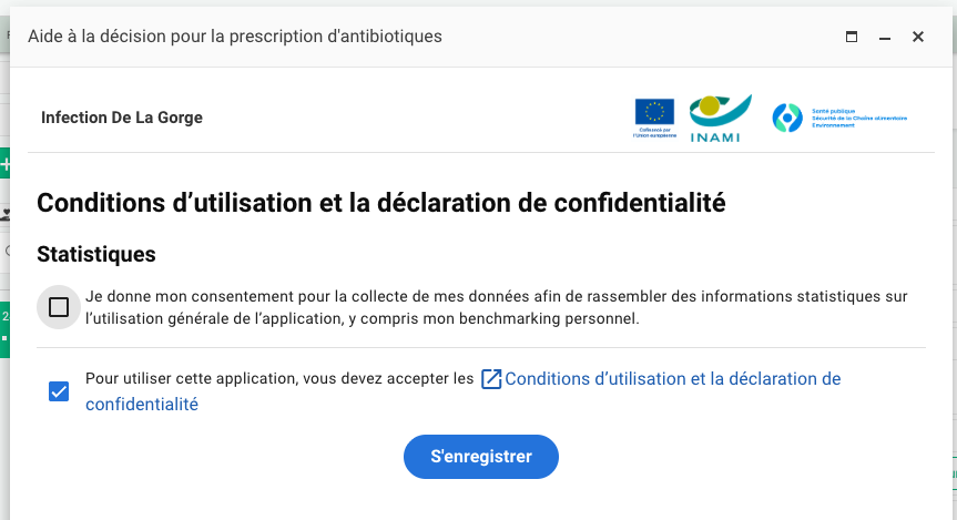 Si vous n'avez pas encore donné votre consentement pour l'utilisation du service d'aide la décision, vous devrez d'abord le faire en cochant la 2ième case.