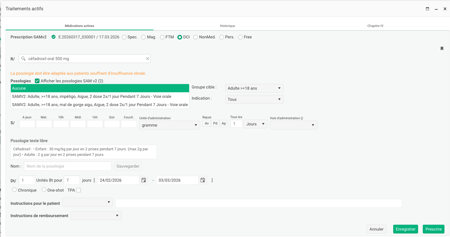 (A ce stade la posologie sera en texte libre, mais rien ne vous empêche de l'éditer ou de la convertir en posologie structurée)