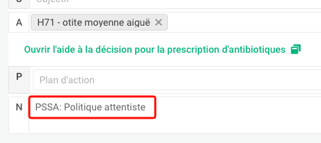 - L'aide est proposée pour certain diagnostics encodés dans le champ A d'un contact MSOAP.