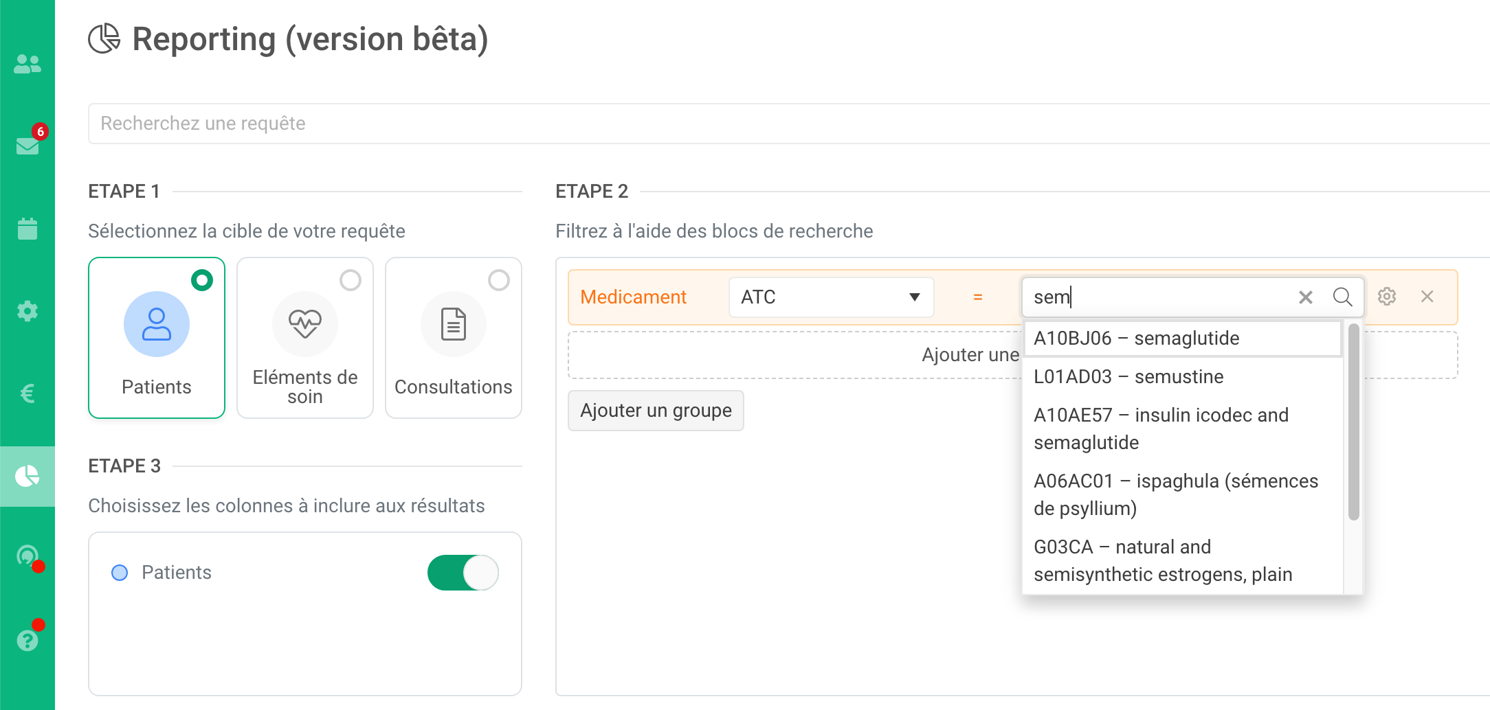Exemple dans Reporting (ajout semaglutide):