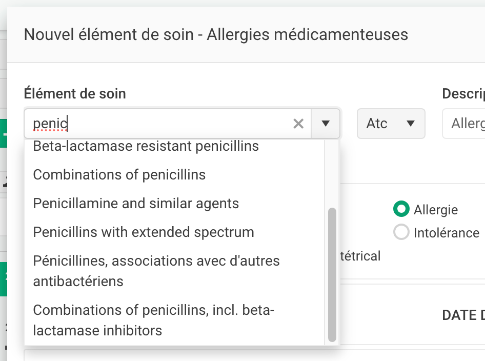 Pour rappel: ces codes ATC sont utilisés pour indiquer des allergies, intolérances et pour rechercher des classes de médicaments via module de Reporting.