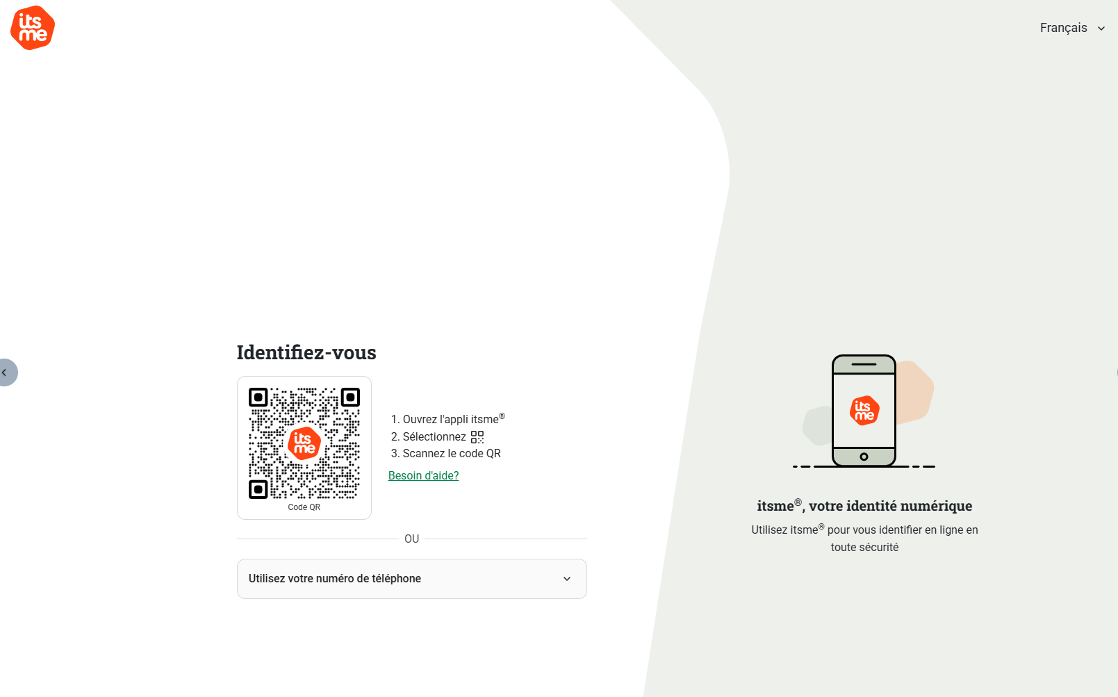 Vous serez redirigé vers CSAM et vous pourrez vous connecter via itsme. Vous pourrez vous connecter sans entrer votre login ni votre mot de passe Medispring.