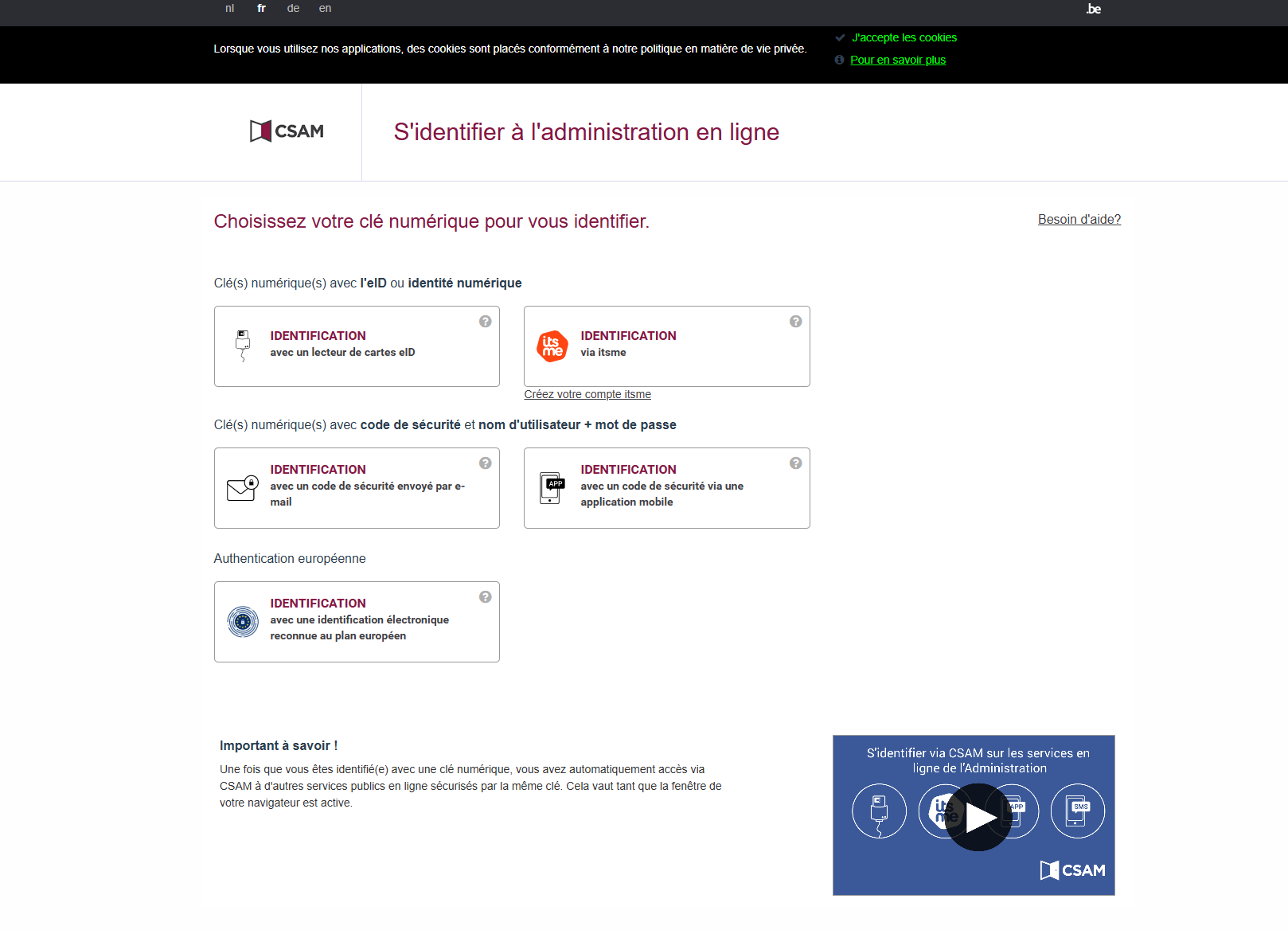 Une fois que vous cliquer sur Activer, vous serez redirigé vers CSAM avec différentes options d’activation dont itsme