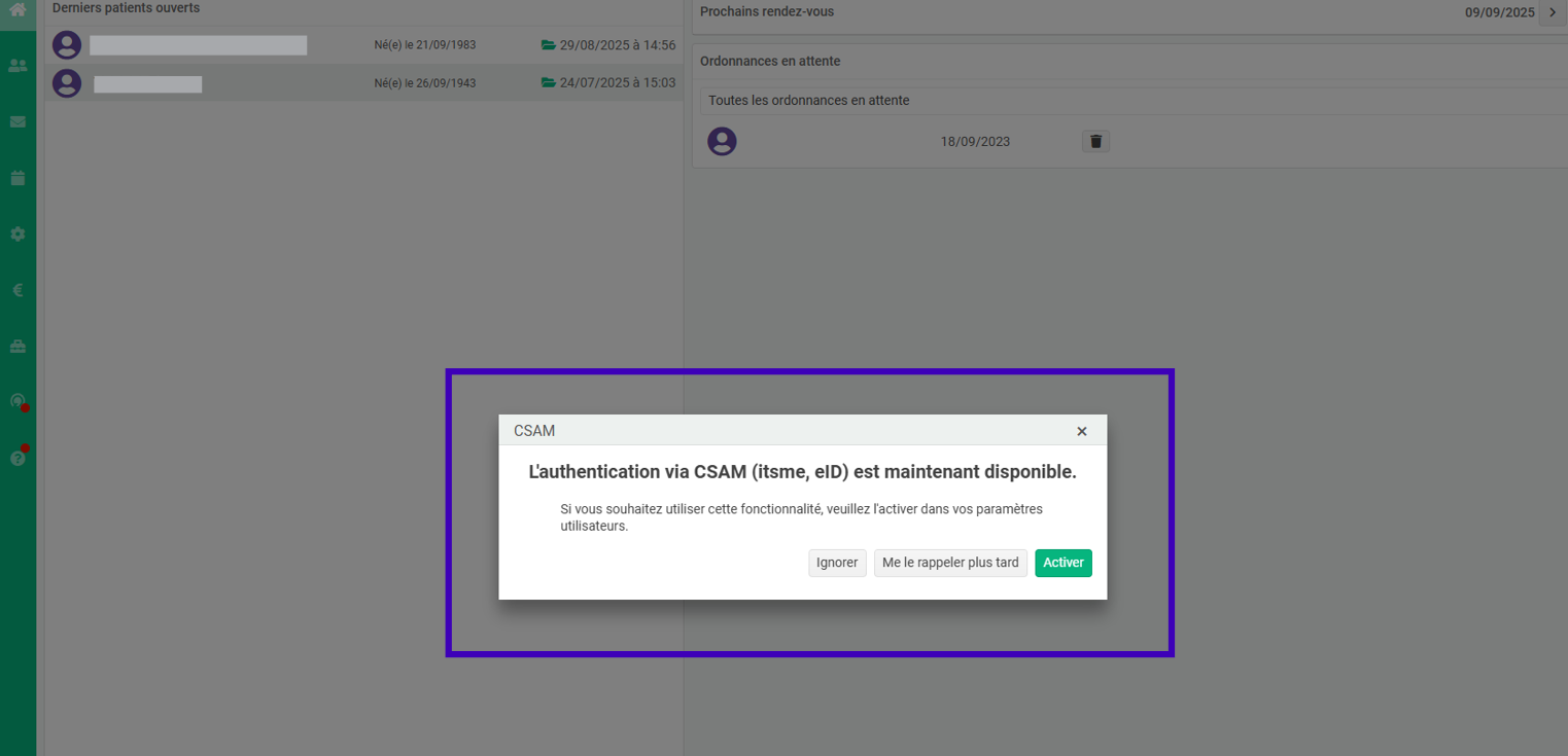 Un pop-up apparaît pour vous proposer l’activation de l’authentification via CSAM. Vous pouvez :