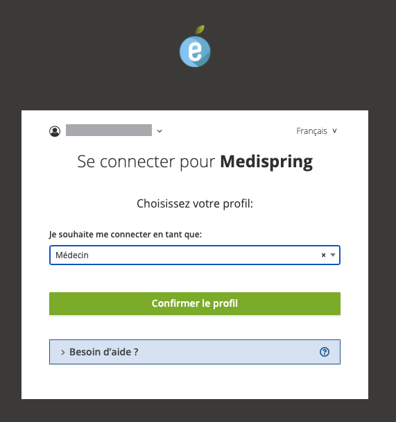Connectez-vous normalement à Medispring avec votre login et votre mot de passe.