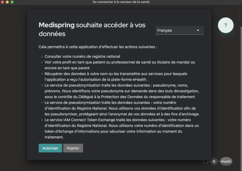 Vous avez une dernière étape qui vous demande si vous autorisez Medispring a accéder à vos données