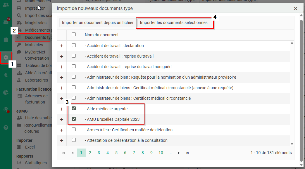 Pour importer les documents-type d'Attestation d'aide médicale urgente dans votre Medispring, cf. ces instructions