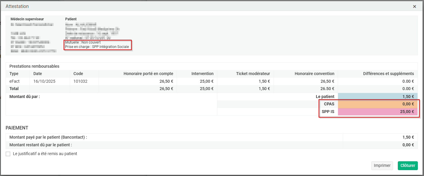 Le montant payé via Mediprima apparait dans la rubrique "SPP IS" (Service Public de Programmation Intégration Sociale)