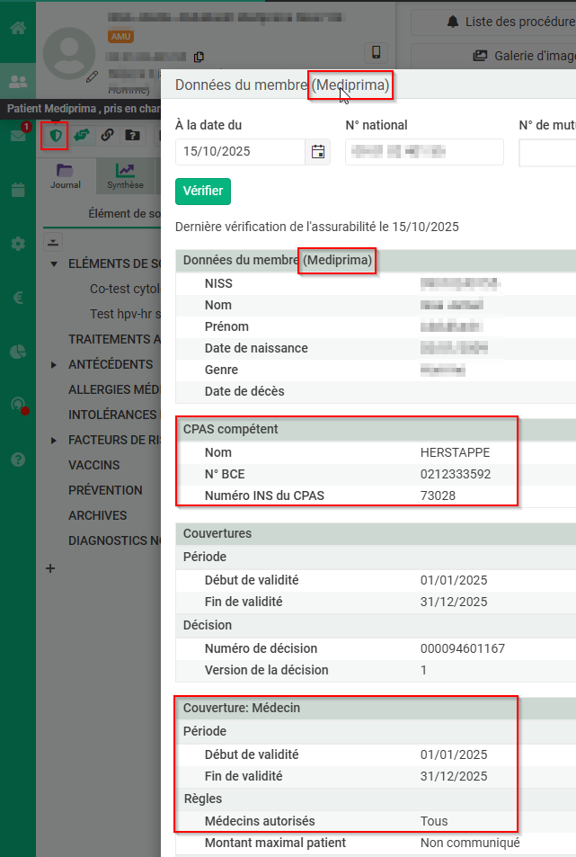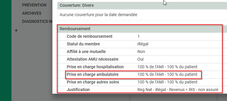 En cliquant sur le bouclier "Assurabilité", vous pouvez voir tous les détails de la prise en charge.