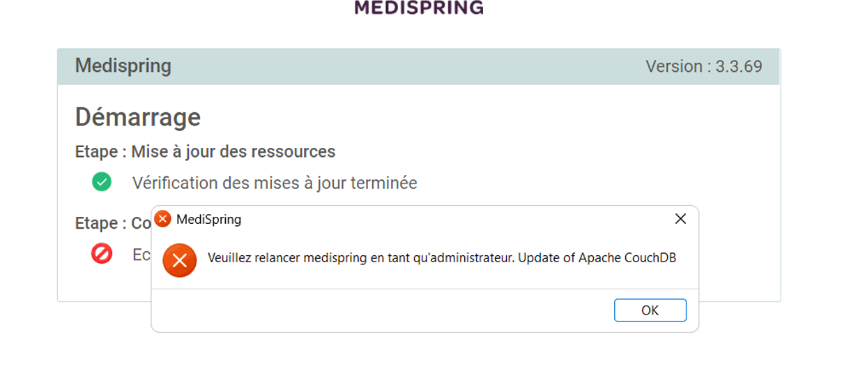 - Relancez Medispring en mode administrateur (voir instructions ci-dessous)
