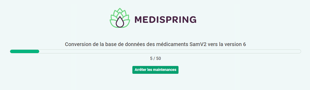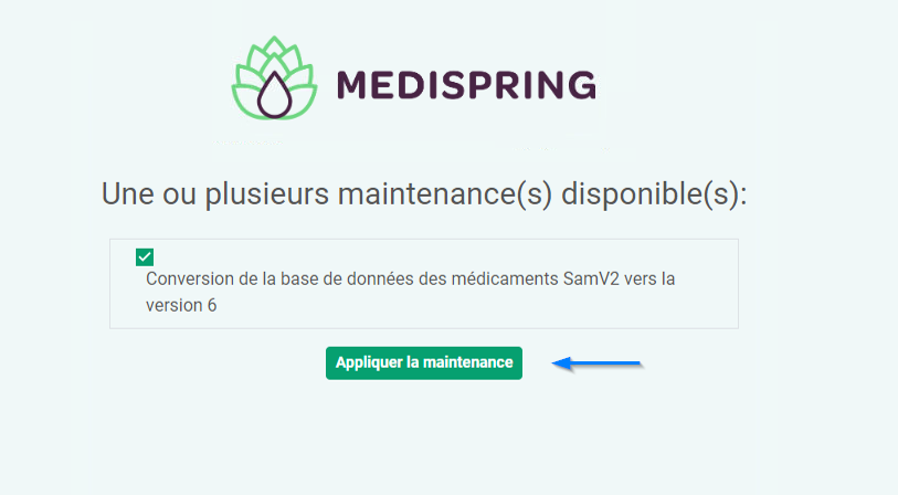 Lorsqu'un de nos agents a terminé une installation complète (avec la base de données) de Medispring, pour pouvoir utiliser pleinement votre Medispring, vous devrez lancer une maintenance.