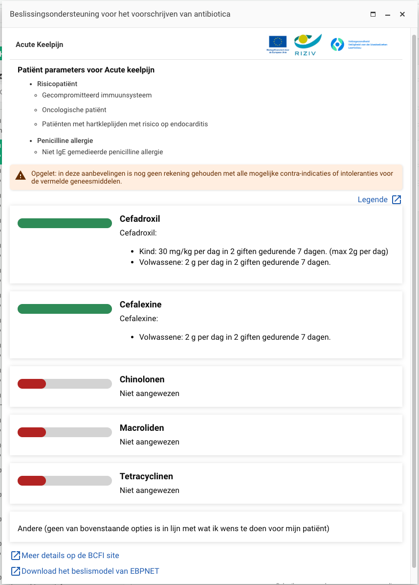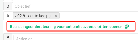 - Klik op de link “Beslissingsondersteuning voor antibioticavoorschriften openen”.