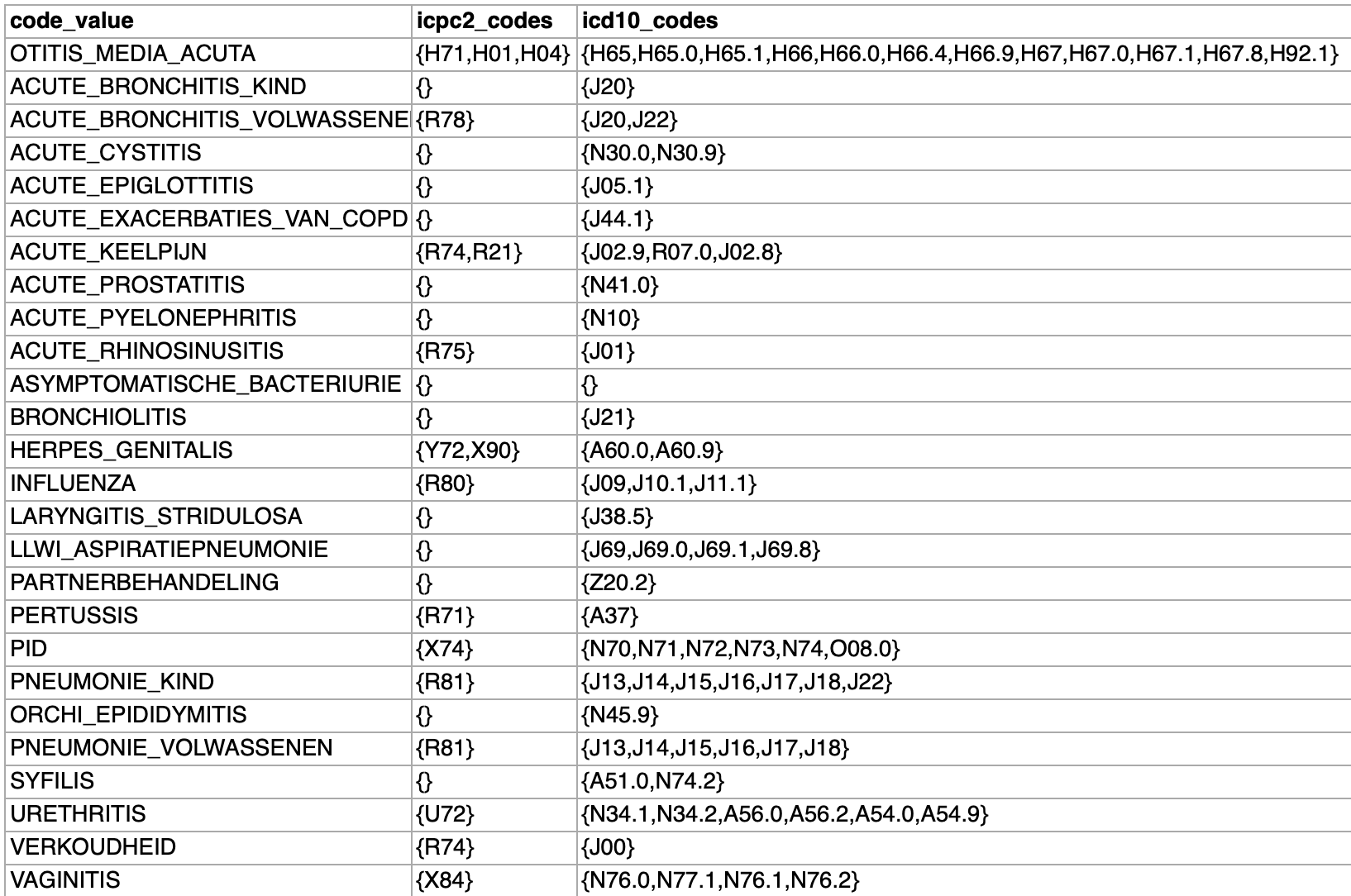 - De lijst met diagnoses waarvoor PSS-A actief wordt
