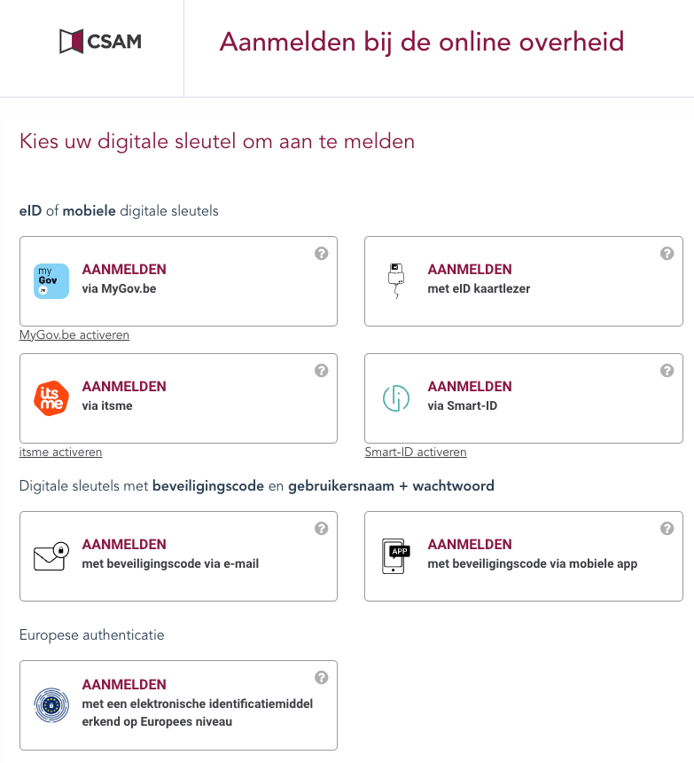 - Als u nog niet bent ingelogd via CSAM, moet u inloggen: