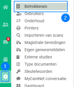 Opmerking: Als het Betalingsinstantie niet in de lijst voorkomt, moet je een nieuwe betrokenne aanmaken met de specialiteit "Betalingsinstantie" via