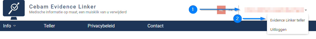 Ga naar https://www.evidencelinker.be/nl en log in door te klikken op SIGN IN. Om het aantal geregistreerde verbindingen te weten te komen, klikt u, zodra u bent ingelogd, op rechtsboven op uw naam (1) en vervolgens op teller (2). Hierdoor wordt uw ...