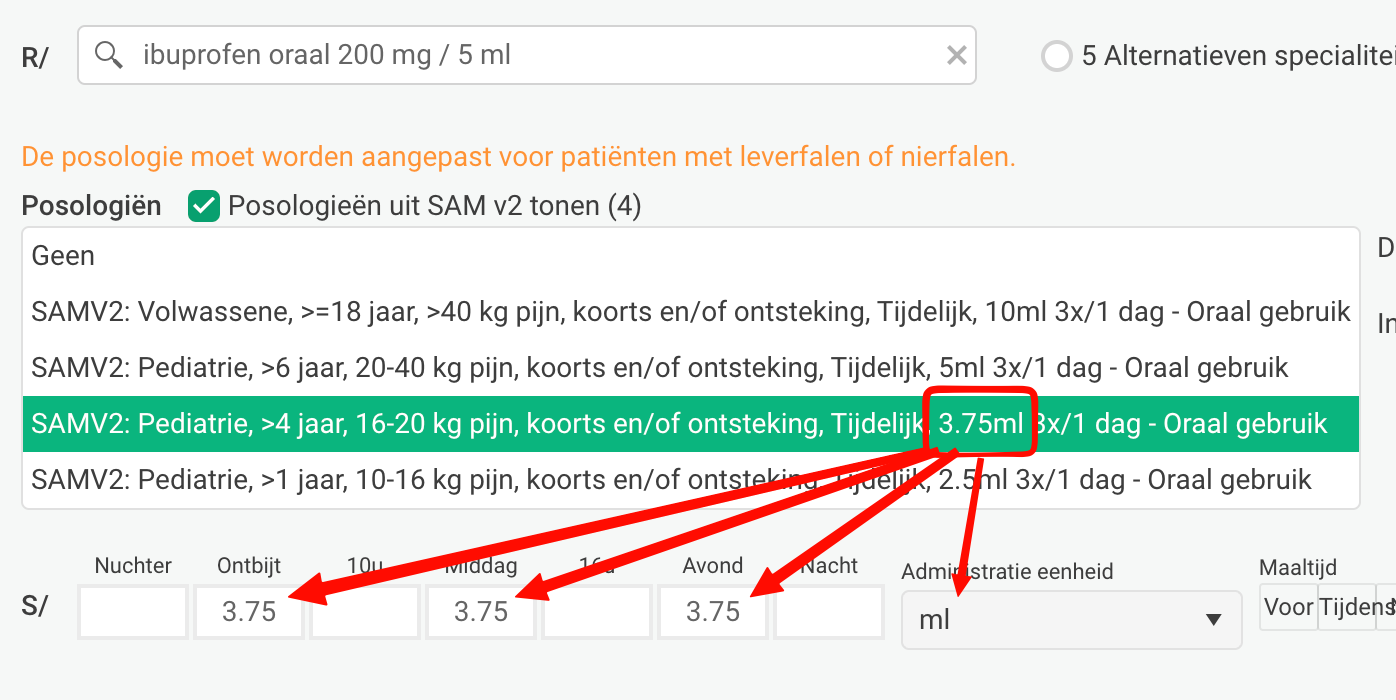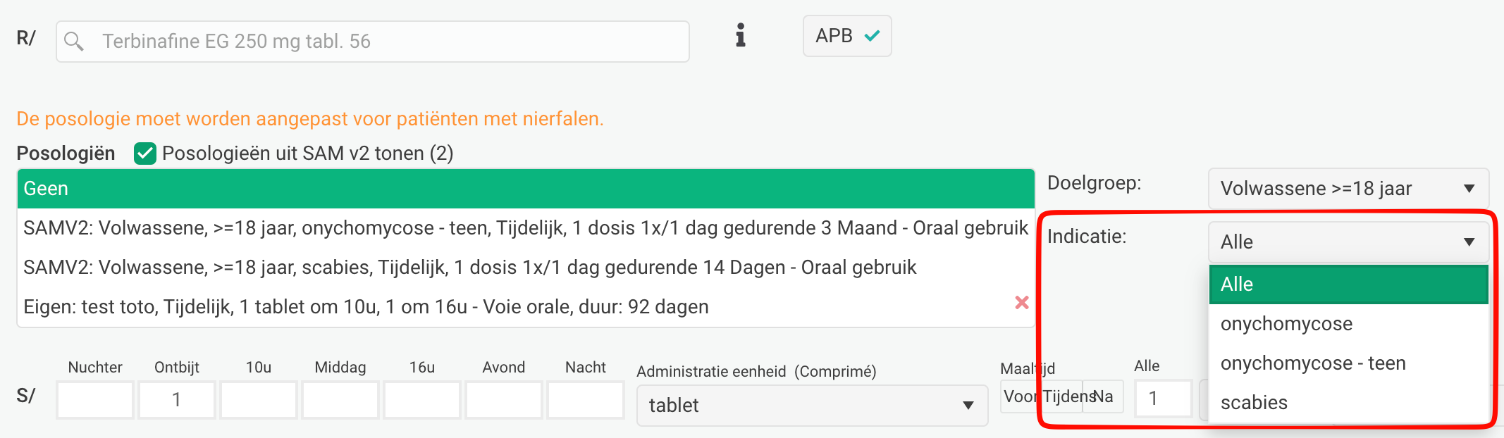 U ziet tussen haakjes nog steeds het aantal beschikbare gebruikelijke posologieën.
