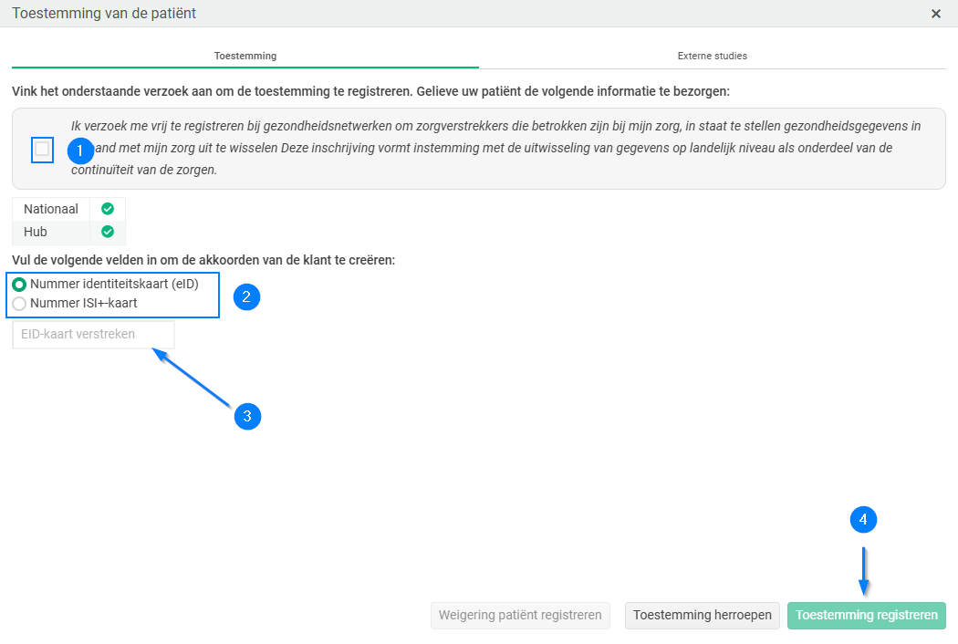 Instructies om het akkoord van een patiënt te registreren (of in te trekken)