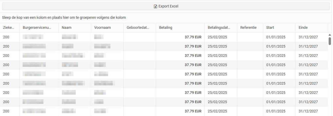 - U kunt een Excel-bestand exporteren om het aantal patiënten te bekijken. Klik op de knop EXPORT EXCEL