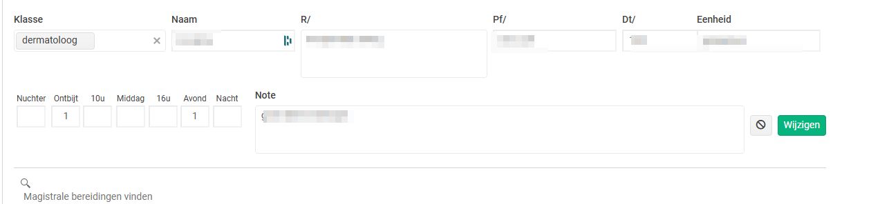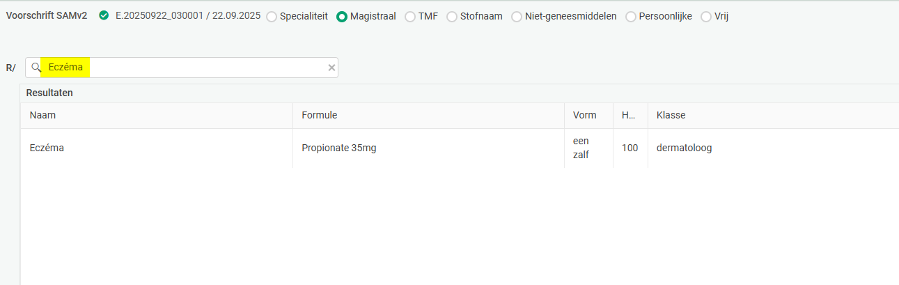 - Geef de naam van de magistraal op in (deze naam wordt opgeslagen in het dossier, maar verschijnt niet in het recept).