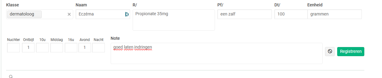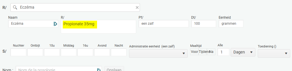 en het aantal mg invoeren op het moment van voorschrijven.