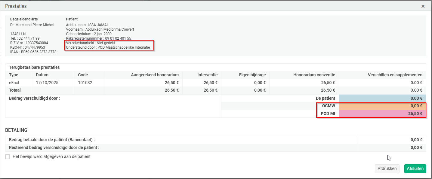 Het via Mediprima betaalde bedrag verschijnt in de rubriek “POD MI” (Programmatorische federale OverheidsDienst - Maatschappelijke Integratie)