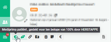 Wanneer een patiënt wordt gedekt door een OCMW, wordt dit aangegeven met een oranje badge “DMH”.