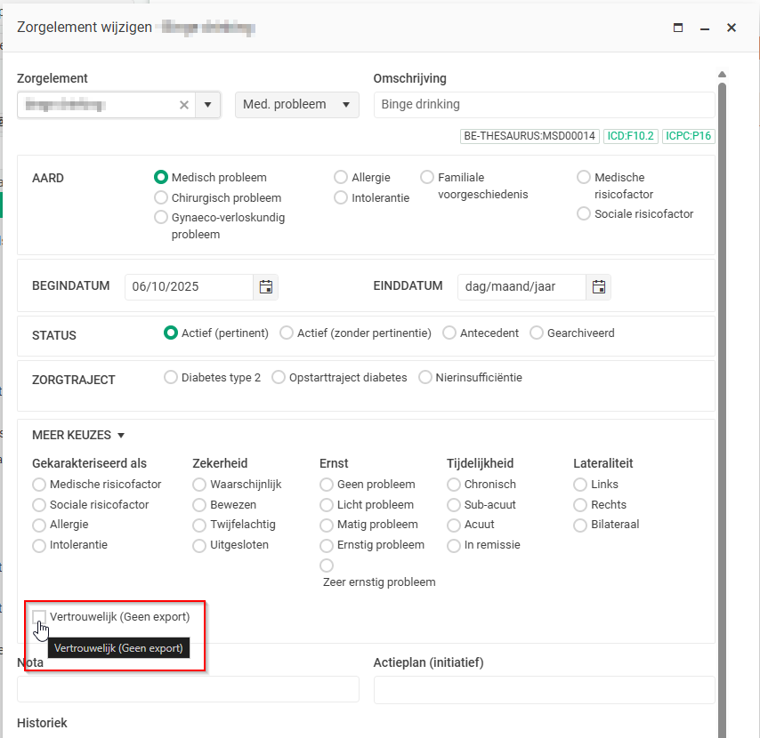 Gezondheidselementen die als "vertrouwelijk” zijn aangeduid, worden niet meer opgenomen in de pdf-export van het patiëntendossier.