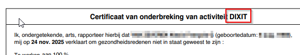 - Toevoeging van de vermelding “DIXIT” in de titel van het Dixit ongeschiktheidsattest.