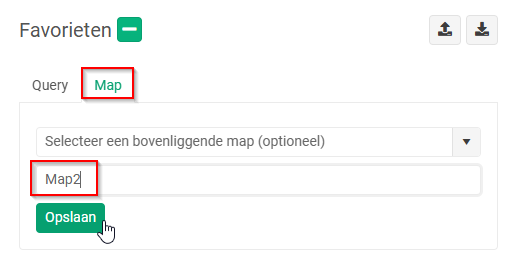 - De mappen en zoekopdrachten kunnen worden verplaatst via drag & drop.