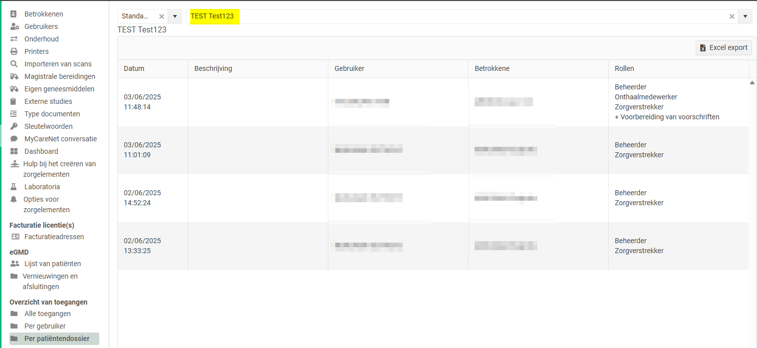 - toegang van een patiënt door gebruikers te controleren