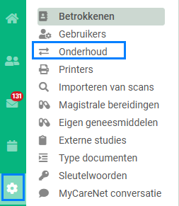 - selecteer het onderhoud "Lijst van zorgelementen die mogelijk ontbreken in de patiëntendossiers "