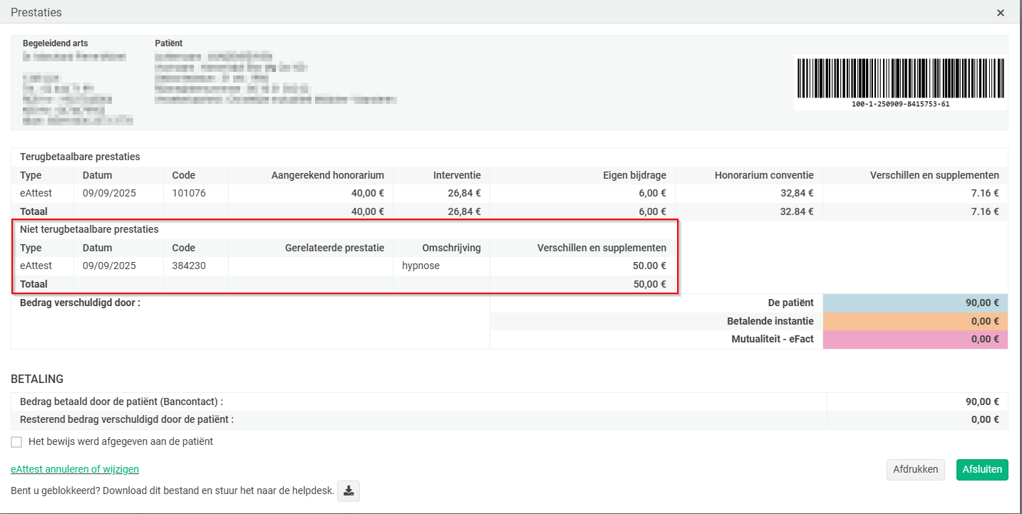 - Niet-vergoede prestaties worden nu ook vermeld op het “bewijs” dat aan de patiënt moet worden overhandigd.