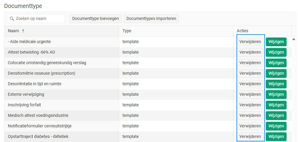 Type documenten verwijderen