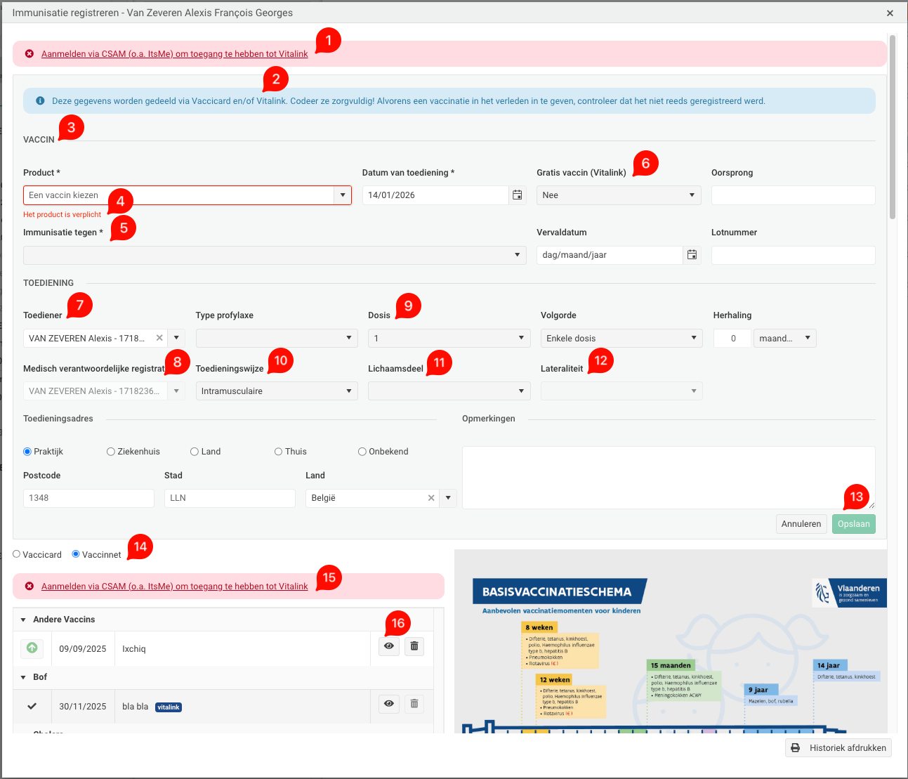 - Vitalink heeft ons verplicht om de naam "Vitalink" te gebruiken in plaats van "Vaccinnet" (ook "Immunisaties" i.p.v. "Vaccinaties").