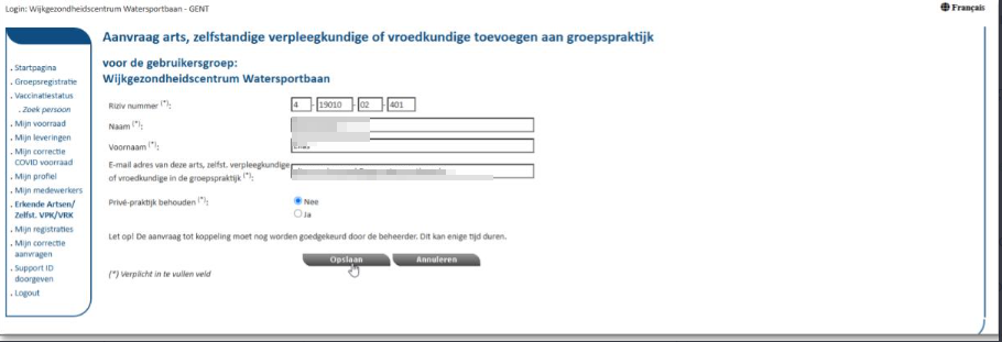 Anders kan je dit groepspraktijk ID aanvragen via e-mail naar vaccinnet@vlaanderen.be.