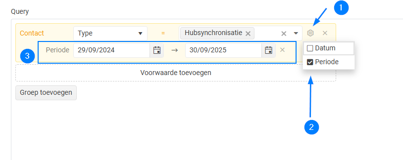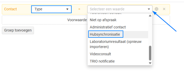 - Kies voor "Contact" TYPE en selecteer vervolgens HUBSYNCHRONISATIE