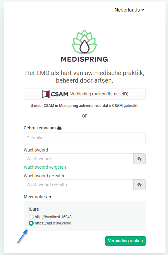 - Vink de optie (2) https://api.icure.cloud (versie>3.2)